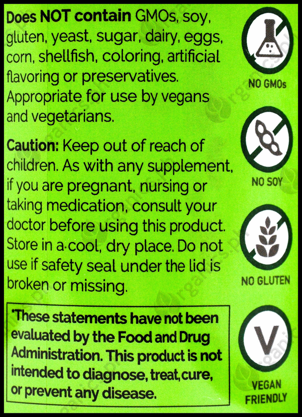 Other Ingredients: Microcrystalline Cellulose, Maltodextrin, Stearic Acid, Cellulose Gum, Silicone Dioxide, Gum Arabic, Magnesium Strearate, Hypromellose.