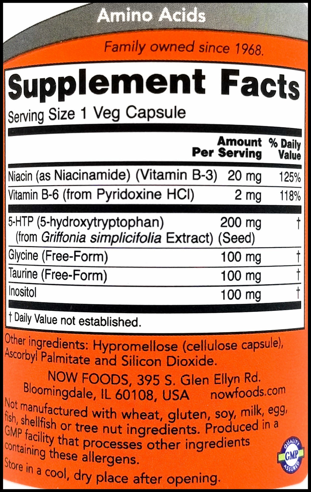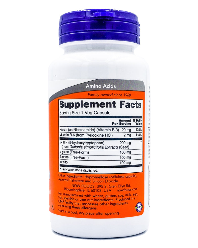 5-HTP (5-hydroxytryptophan) (from Griffonia simplicifolia Extract) (Seed) - 200mg, Niacin (as Niacinamide) (Vitamin B-3), Vitamin B-6 (from Pyridoxine HCl), Glycine (Free-Form), Taurine (Free-Form), Inositol.