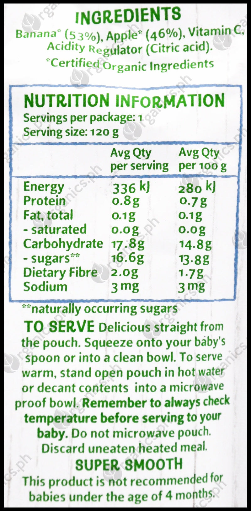 - Sun-ripened bananas are slow cooked with juicy New Zealand apples and blended to a velvety smooth puree. Simply serve on its own or make a fruity rice porridge mixing it with Baby Rice and your baby’s usual milk.