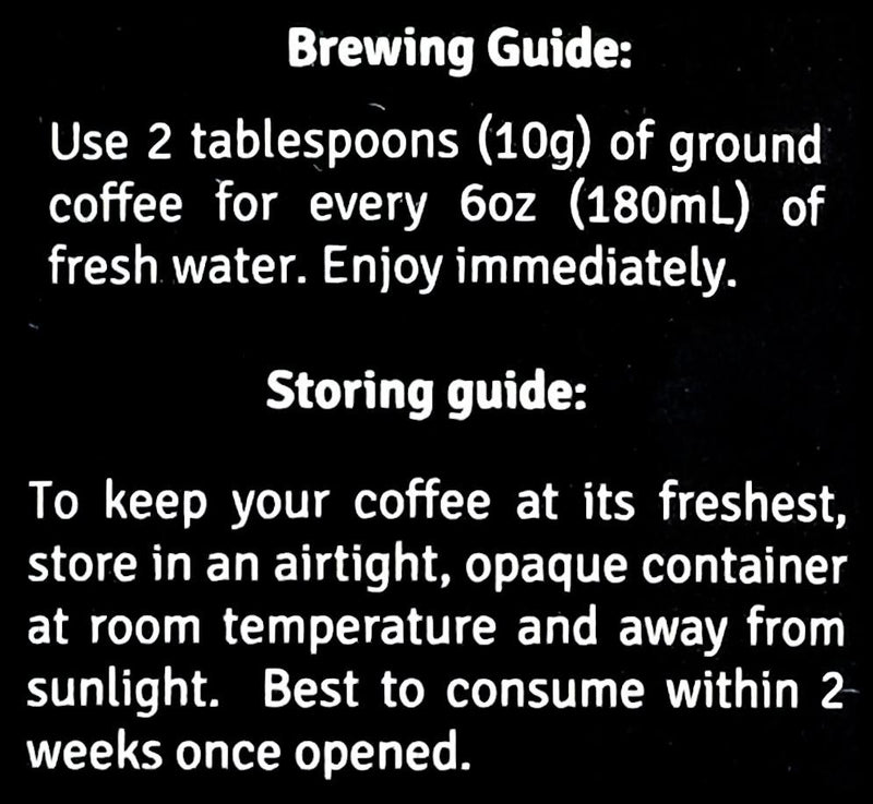 Use 2 tablespoons (10 grams) of ground coffee for every 6 oz (180 ml) of fresh water. Enjoy immediately.