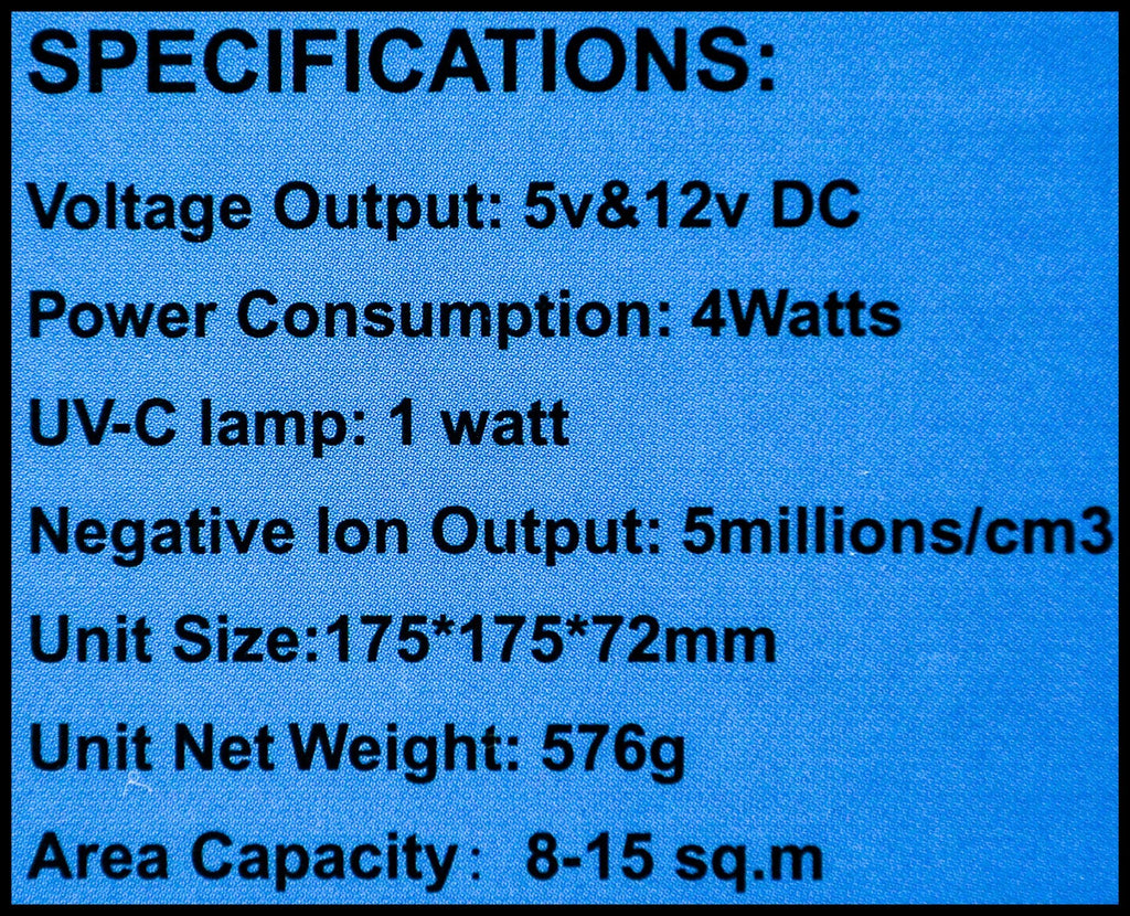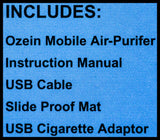 - Negative Ion: 5 million ions cu.cm. Ozein Mobile immediately goes to work in cleaning the indoor air from road exhaust and particles and other allergens by using Negative Ionic purification.