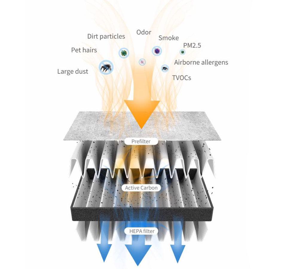 - Activated Carbon. The carbon filter efficiently adsorbs foul odor and protects you from harmful chemicals and gases present in every moving vehicle.