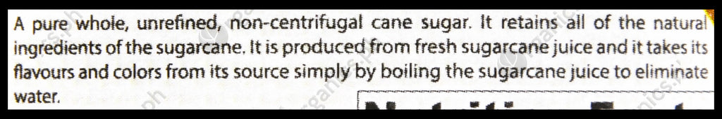- A pure whole, unrefined, non-centrifugal cane sugar.