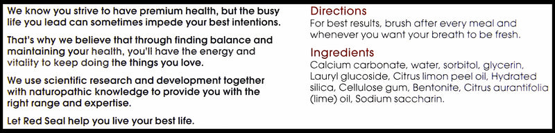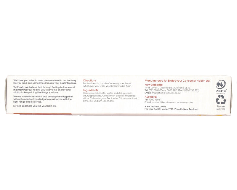 Red Seal SLS Free Natural Toothpaste - Lemon Mint Free (100g)