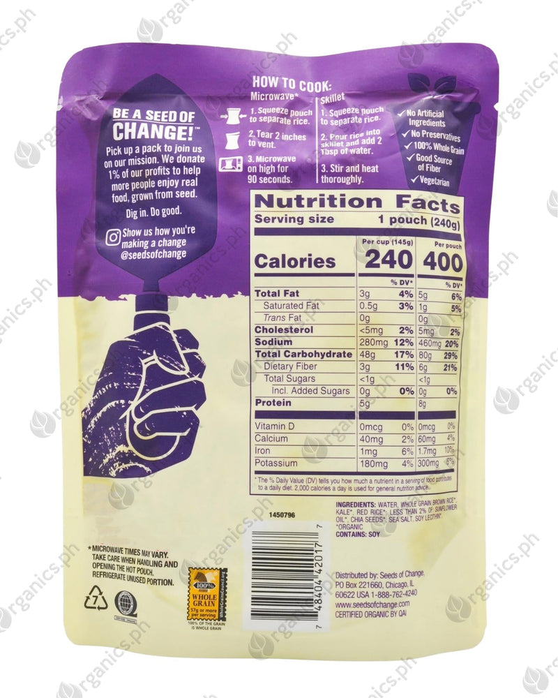 Seed of Change Organic Brown & Red Rice w/ Chia & Kale (240g) - Ready to Cook
