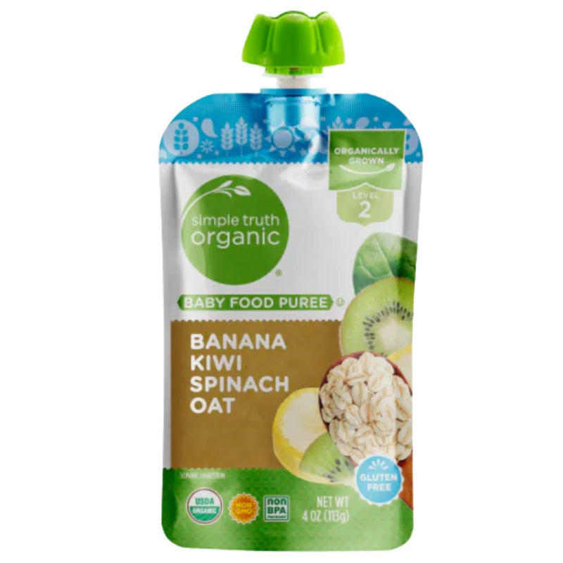 • Simple Truth Organic® purees make feeding your baby good, clean food a simple decision. Watch their face light up when they try our pure blend of ripe banana and kiwi with nutrient-packed spinach and wholesome oats.