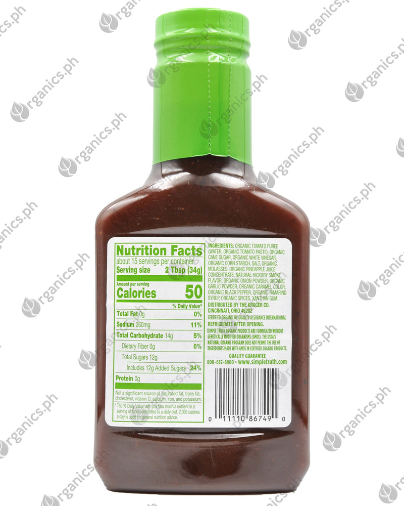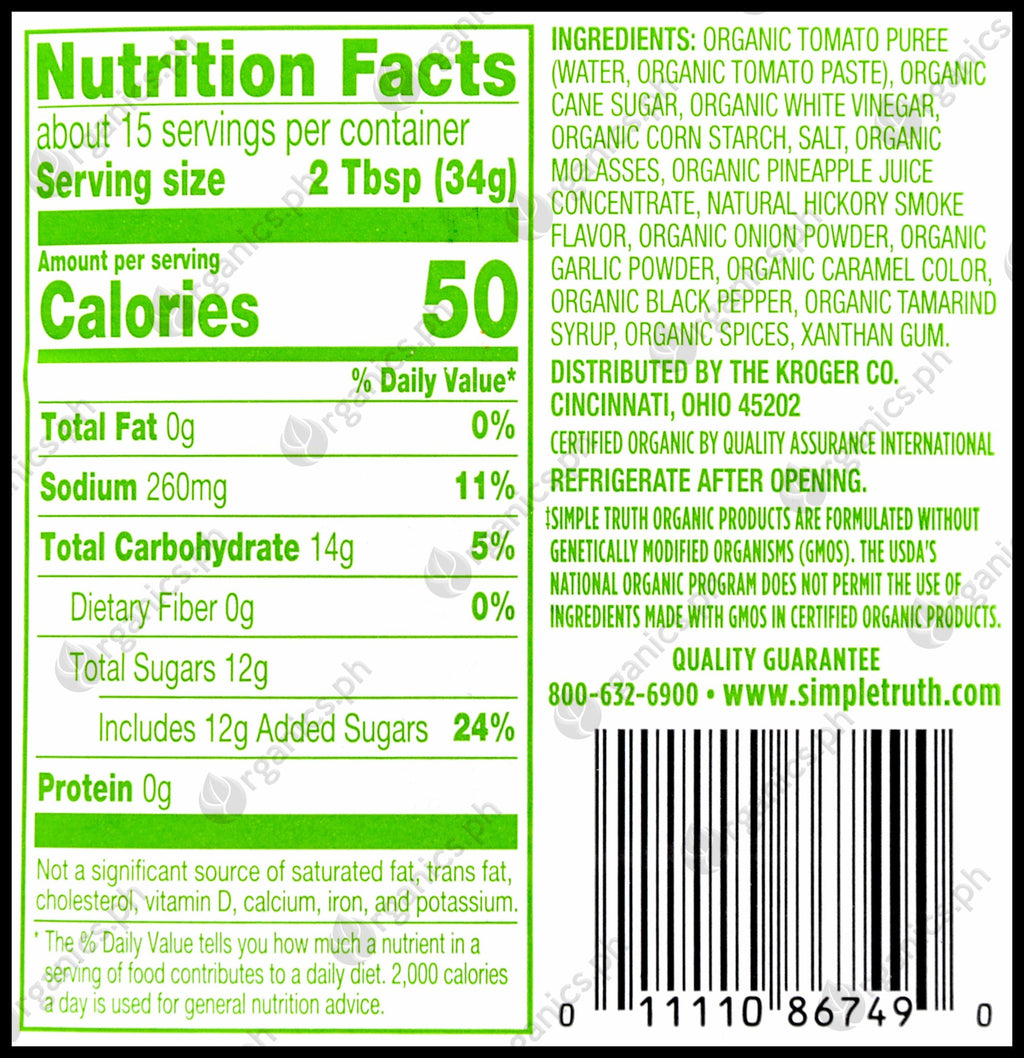 Organic Tomato Puree (Water, Organic Tomato Paste), Organic Cane Sugar, Organic White Vinegar, Organic Corn Starch, Salt, Organic Molasses, Organic Pineapple Juice Concentrate, Natural Hickory Smoke Flavor, Organic Onion Powder, Organic Garlic Powder, Organic Caramel Color, Organic Black Pepper, Organic Tamarind Syrup, Organic Spices, Xanthan Gum.