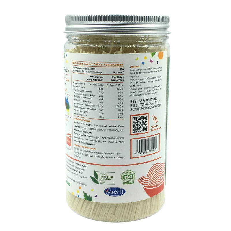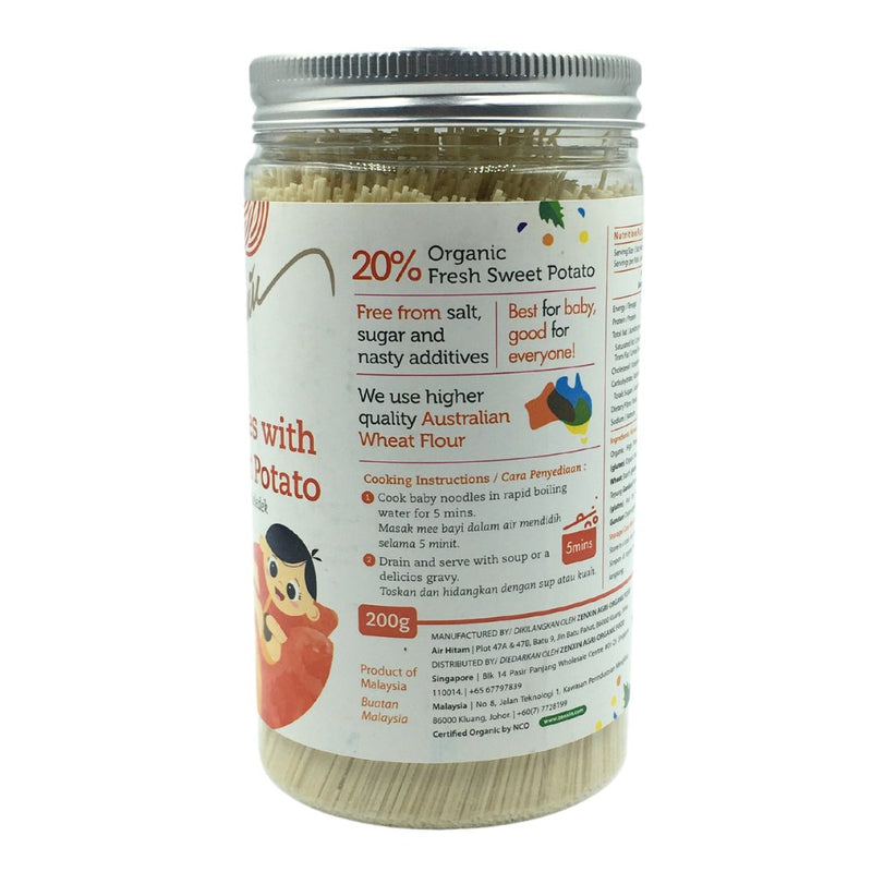 - Simply Natural Organic Baby Noodles with Fresh Sweet Potato are handmade using premium ingredients: 20% fresh organic sweet potato purée and high protein unbleached Australian flour.