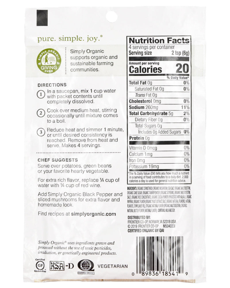- This easy-to-use seasoning mix makes classic mushroom gravy or sauce, depending on your needs. A creamy, organic and delicious addition to dinner.