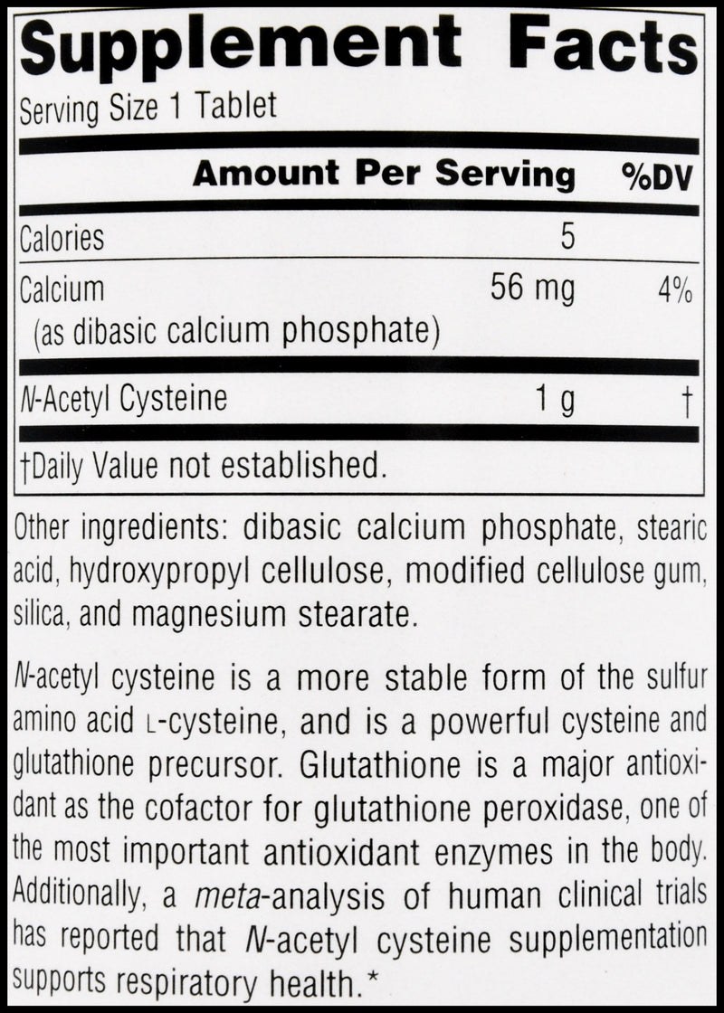 • N-acetyl cysteine is a more stable form of the sulfur amino acid L-cysteine, and is a powerful cysteine and glutathione precursor. Glutathione is a major antioxidant as the cofactor for glutathione peroxidase, one of the most important antioxidant enzymes in the body. Additionally, a meta-analysis of human clinical trials has reported that N-acetyl cysteine supplementation supports respiratory health.