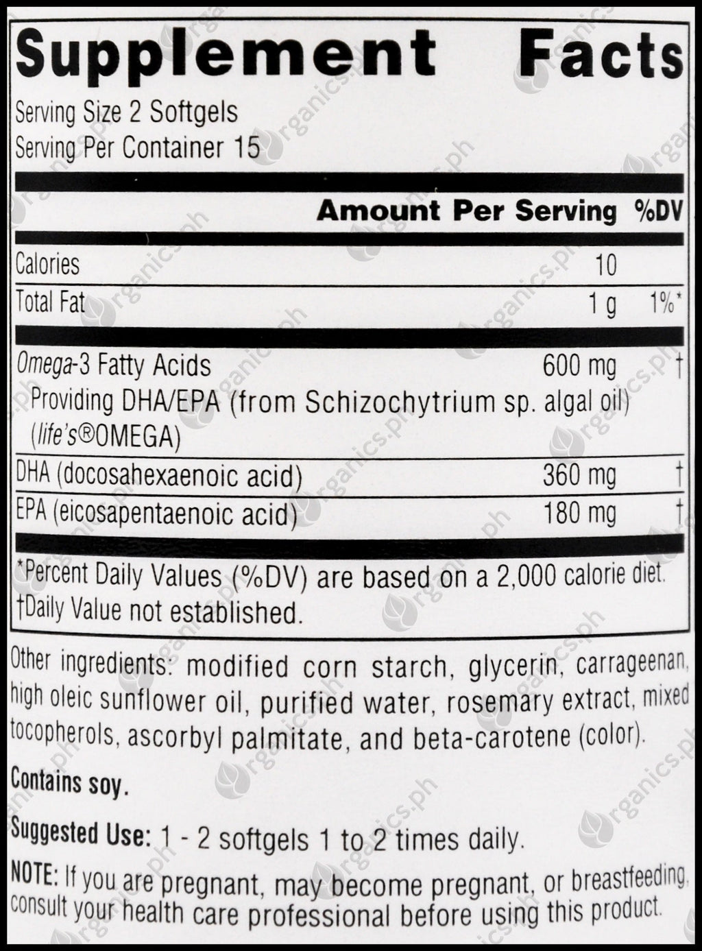 Omega-3 Fatty Acids Providing DHA/EPA (from algal oil) (life's®omega) 600 mg