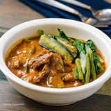 Savor the goodness of organic, preservative-free, and ozonated beef kare-kare, enriched with homemade alamang. This Filipino favorite boasts tender beef simmered to perfection in a flavorful home made peanut sauce.