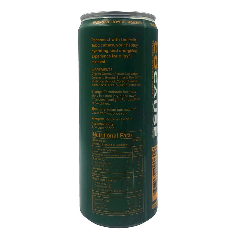 Organic Coconut Flower Sap, Water, Calamansi Extract, Butterfly Pea Extract, Mushroom Extract, Carbon Dioxide, Iodized Salt, Acid Regulator (citric acid, sodium citrate)