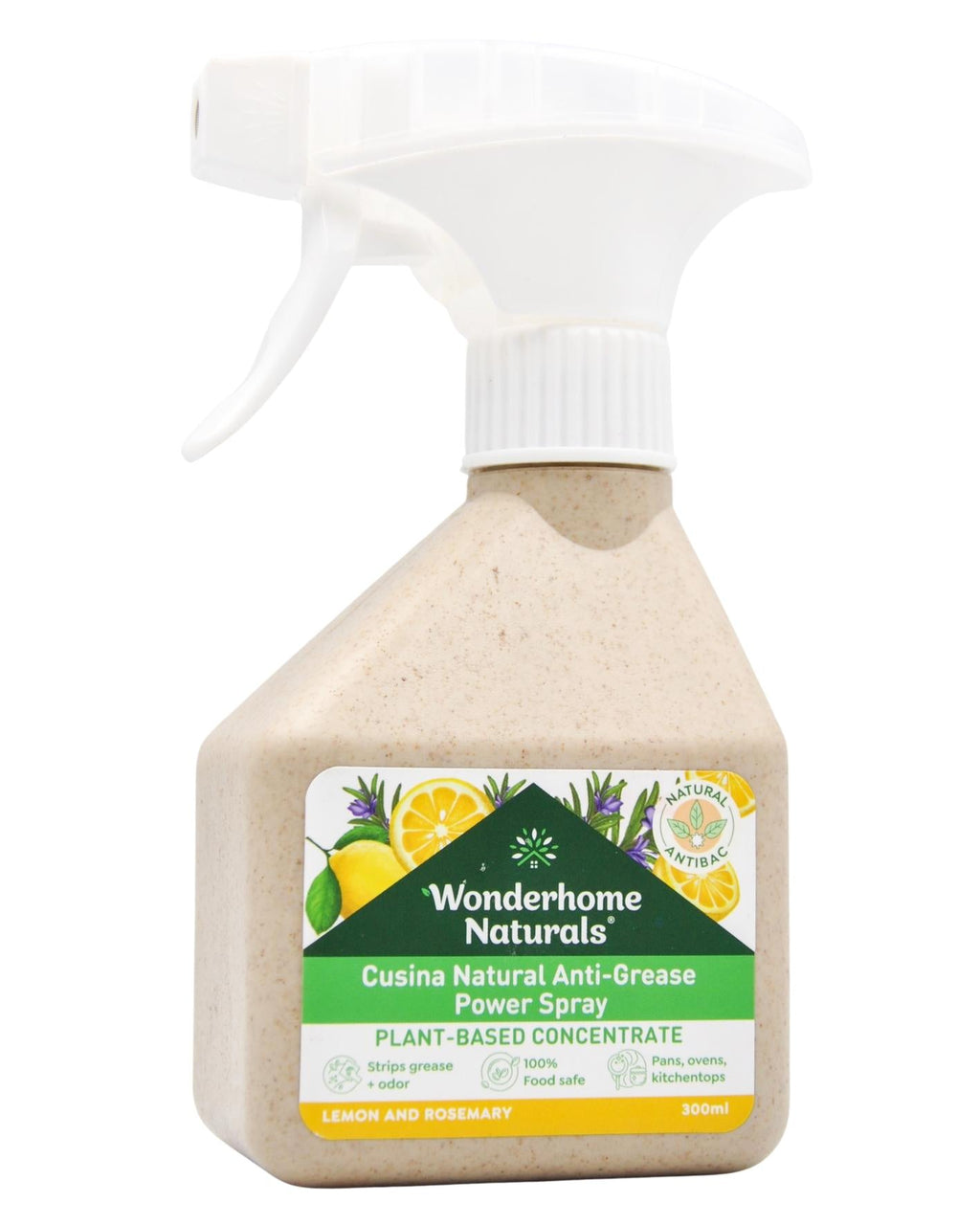 Wonderhome Naturals Cusina Kitchen Anti-Grease Power Spray - Lemon & Rosemary (300ml)