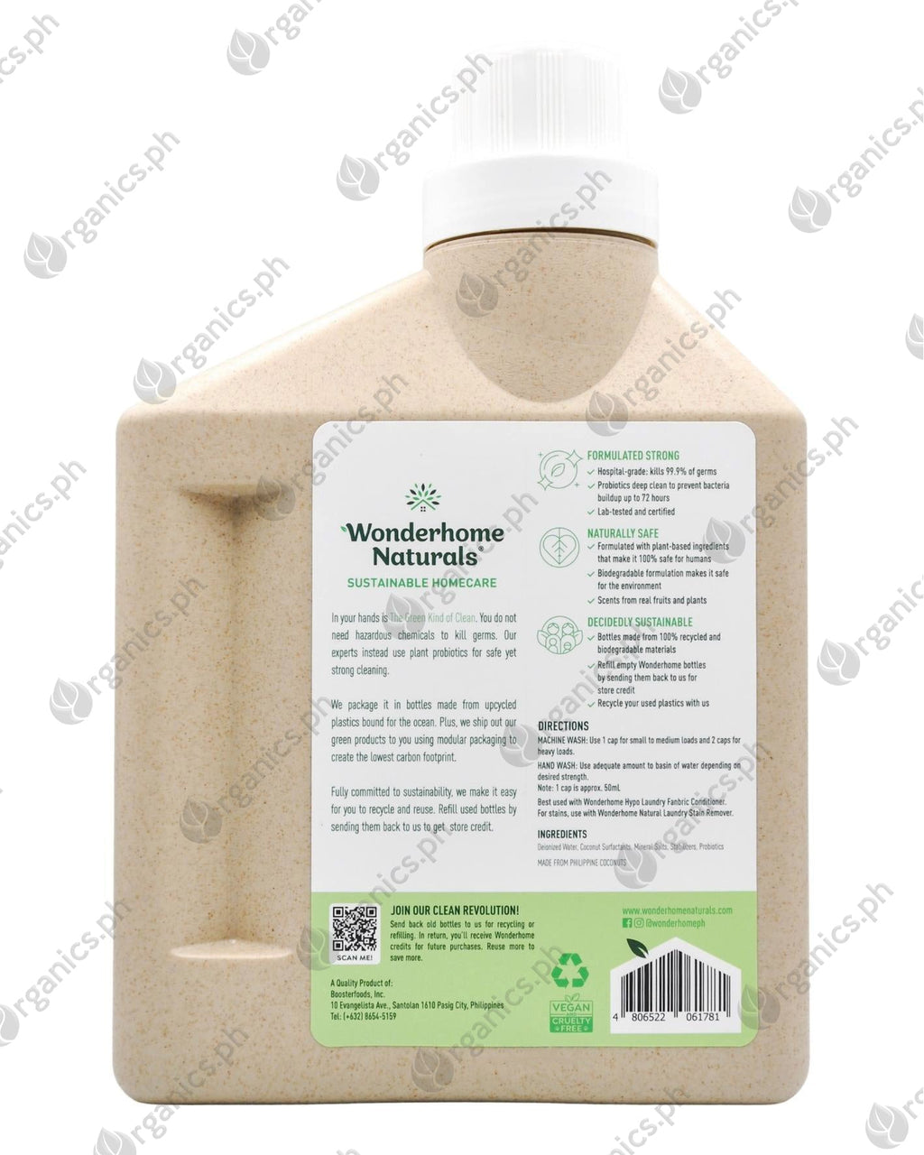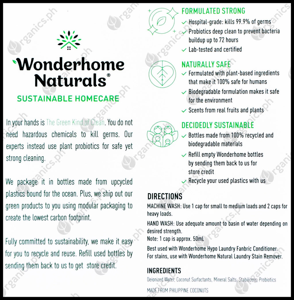 1. Into washing machine, add 1 cap of Wonderhome Natural