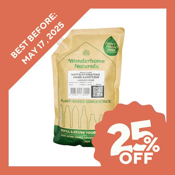 Wonderhome Naturals Natto Hydrating Hand Sanitizer - Lavender & Cedar - Refill Pack (1 Liter)