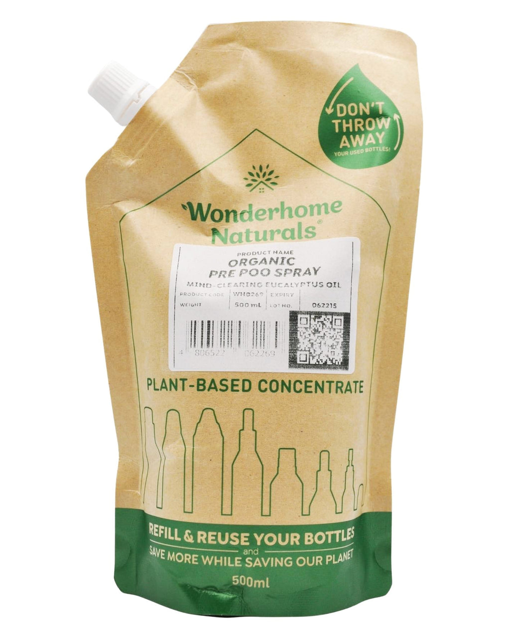 Wonderhome Naturals Pre-Poo Spray - Organic Eucalyptus Oil - Refill Pack (500ml)